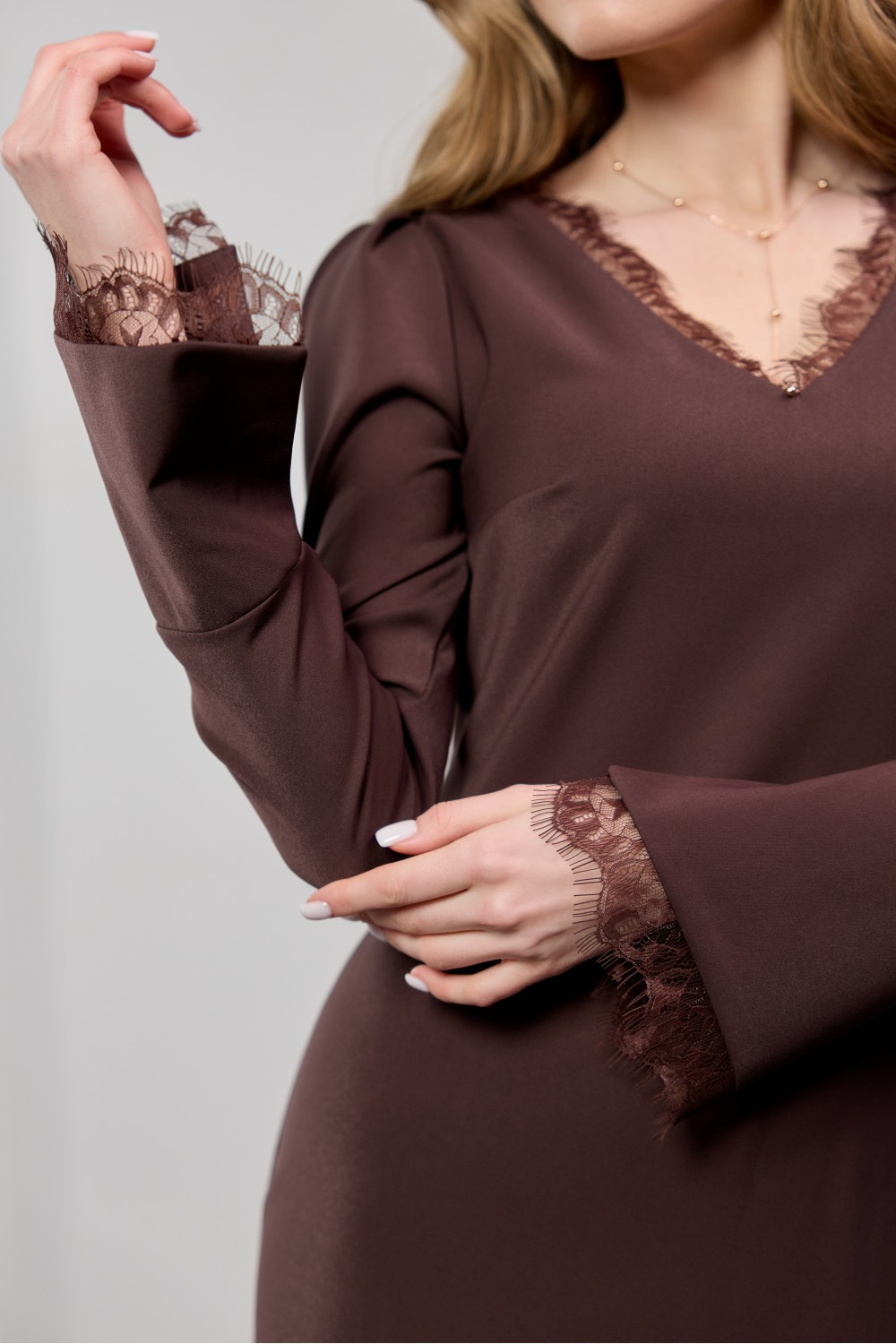 Платье с кружевом 557-05 шоколад